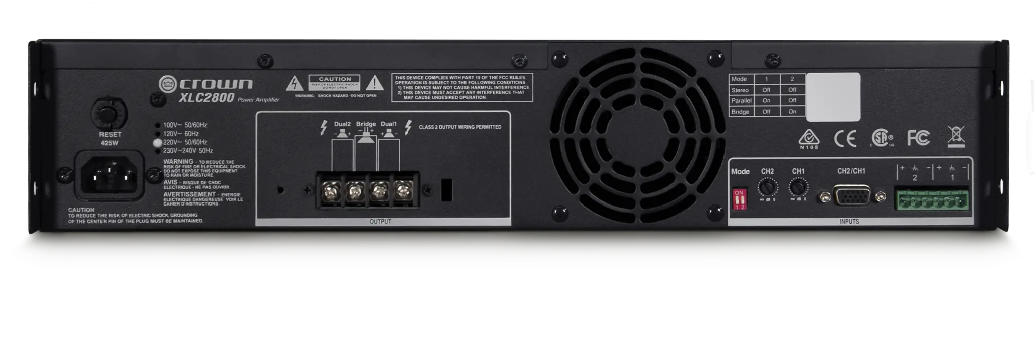 - Two models of 500W (XLC2500) and 800W (XLC2800) per channel at 4-ohms